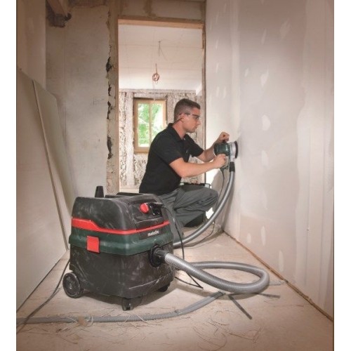 Пилосос Metabo ASR 25 L SC - має невеликий розмір і справляється з сухим та вологим прибиранням. Незамінний як на будівництві, так і в майстернях чи салоні автомобіля. Справляється з пилом класу L – це пил від гіпсу, фарб та лаків, вапна, добрив, крейди. Також добре засмоктує стружку та пил, що утворюються під час роботи з електроінструментом. Має функцію автоматичного вимкнення під час заповнення резервуара. Модель оснащена електромагнітним вібратором для чищення фільтра.
