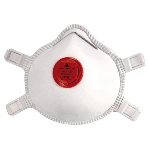 Респіратор Delta Plus FFP3 Venitex М1300VC протиаерозольний для захисту дихання від шкідливих випарів. Виготовлений із нетканого синтетичного волокна. Чашоподібна форма. Носовий затискач для зручного регулювання прилягання. М'яка окантовка під носовим затискачем. Високоефективний клапан виходу. Факультативний тест на засмічення (доломіт) для тривалішого використання.