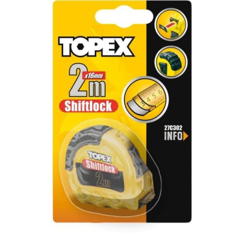 Рулетка сталева Topex має три фіксатори змотування стрічки.