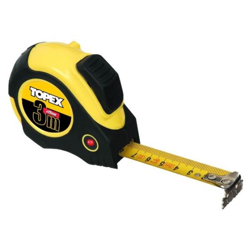 Рулетка стальная Topex с автоматической блокировкой сматывания ленты.