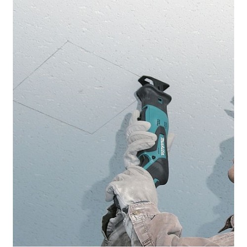 Шабельна пила акумуляторна Makita JR100DWE має високу швидкість різання з можливістю регулювання швидкості. Заміна пильного полотна та регулювання упору здійснюється без допомоги інструменту. Два вимикачі дозволяють керувати ножівкою, тримаючи її як за рукоятку, так і за корпус. Кнопка блокування вимикача знаходиться з двох боків ручки, що полегшує роботу.