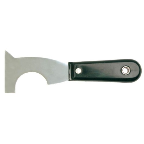 Шпатель малярський з виїмкою, поліроване лезо, пластмасова рукоятка.