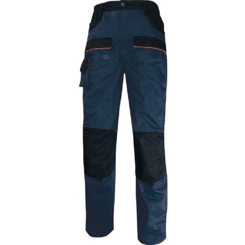 Штани робочі Delta Plus MCPANBM - новий рівень комфорту та безпеки спецодягу для працівників будівництва та суміжних галузей. Штани виробництва французького бренду «Дельта Плюс» виготовлені зі складового матеріалу: твіл 65%, поліестер 35%, бавовна 245 г/м2. Розмірна сітка S-3XL Колір темно-синій. Еластична стрічка з боків на лінії талії в поясі штанів. Кишені для наколінників. 9 кишень, включаючи 1 для замірювальної лінійки.