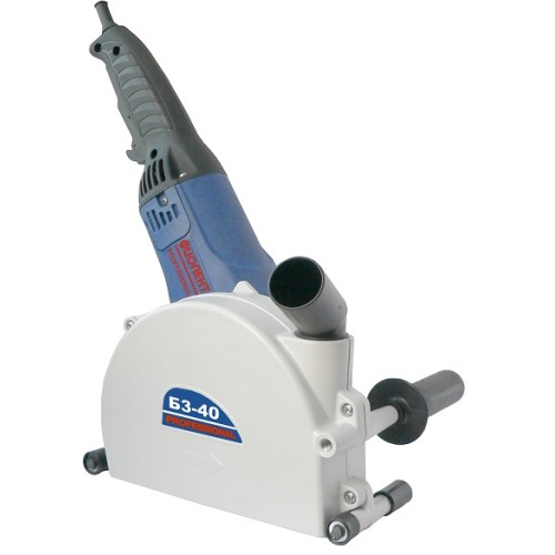 Борозноділ Фіолент Б3-40 Ф0054 використовується як для прокладання штроби методом сухого пила в стінах з цегли, черепашника, залізобетонних та вапнякових блоків, так і для зачистки, шліфування та різання металу, обробки каменю та бетону. Додаткова рукоятка може встановлюватись у двох положеннях. Корпус редуктора виконаний із алюмінієвого сплаву, завдяки чому збільшується робочий ресурс інструменту. Можливе підключення пилососу, що дозволяє утримувати робоче місце у чистоті. Різьблення шпинделя М14.