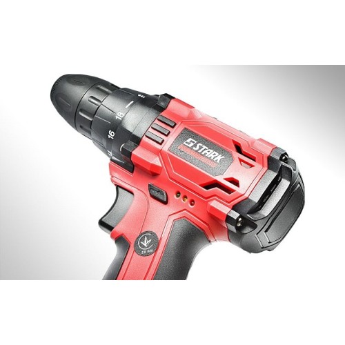 Stark CD 18-2 Li-ion – акумуляторний дриль-шуруповерт, призначений для закручування та викручування шурупів, гвинтів, шурупів, а також для свердління в деревині, пластмасі та інших матеріалах. Напруга - 18 В. Ємність акумулятора - 1.5 А * год. Кількість акумуляторів – 2 шт. У пластиковому кейсі. Шуруповерт цієї серії має регулювання крутного моменту і можливість перемикання між двома режимами швидкостей.