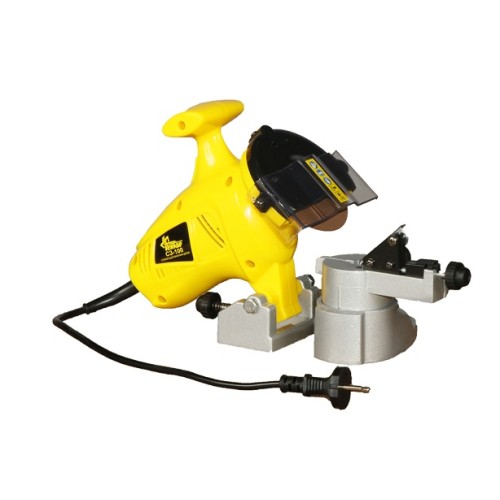 Дана модель оснащена надійним електродвигуном із споживаною потужністю 180 Вт, що в поєднанні з високою швидкістю обертання шпинделя, що дорівнює 6300 об/хв, забезпечує швидке та ефективне заточування ланцюга. Висока точність та якість обробки досягається за допомогою поворотної бази, регульованого обмежувача нахилу точильного диска та шаблону для точної фіксації ланцюга. В роботі можуть використовуватися точильні диски зовнішнім діаметром 100 мм із посадковим діаметром 10 мм та товщиною 3,2 мм.