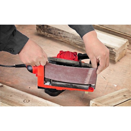 електронний регулятор швидкості подачі стрічки, що дозволяє працювати з різними матеріалами та підвищує якість шліфування;