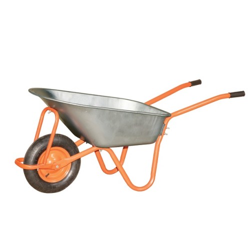 Тачка садово строительная Vitals 75/150 Оранжевая - незаменимый инструмент при любой стройке или на дачном участке. Ручная тачка с вместительным кузовом объемом до 75 л и максимальной грузоподъемностью 150 кг. Оборудована пневматическим колесом и оцинкованным кузовом. Поставляется в разобранном виде.