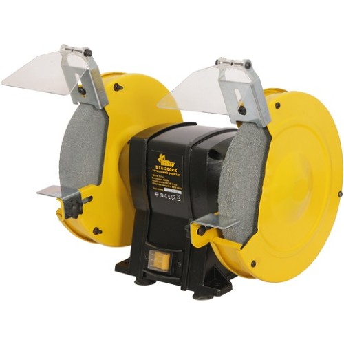 Верстат точильний Кентавр ВТА-200СК зібраний на базі індукційного однофазного двигуна потужністю 450Вт. Він відрізняється невеликою вагою та габаритами, що дозволить практично встановити його навіть у невеликих приміщеннях. Пристрій відрізняється зниженим рівнем шуму та вібрації для комфорту роботи. Швидко, точно, безпечно зачистити або заточити різні вироби можна завдяки регульованим прозорим захисним екранам та спеціальним упорам. Також слід зазначити наявність двох каменів різною зернистістю для різних металів. А пило-і вологозахищена кнопка не вийде з ладу навіть при роботі в жорстких умовах.