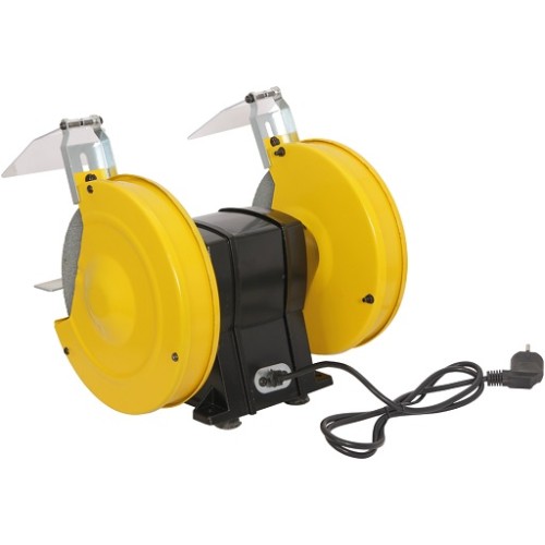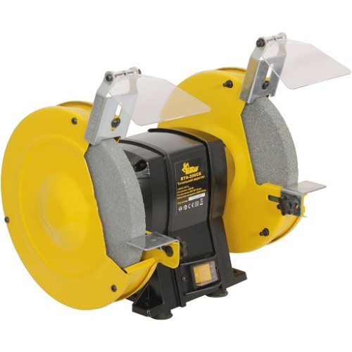 Верстат точильний Кентавр ВТА-200СК зібраний на базі індукційного однофазного двигуна потужністю 450Вт. Він відрізняється невеликою вагою та габаритами, що дозволить практично встановити його навіть у невеликих приміщеннях. Пристрій відрізняється зниженим рівнем шуму та вібрації для комфорту роботи. Швидко, точно, безпечно зачистити або заточити різні вироби можна завдяки регульованим прозорим захисним екранам та спеціальним упорам. Також слід зазначити наявність двох каменів різною зернистістю для різних металів. А пило-і вологозахищена кнопка не вийде з ладу навіть при роботі в жорстких умовах.