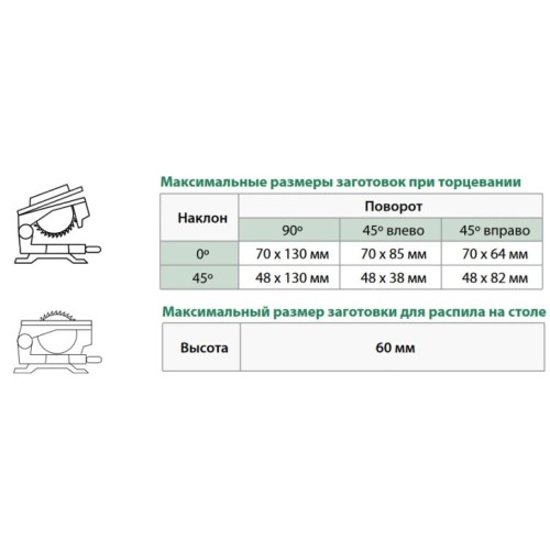Максимальний розмір заготовки для розпилу на столі 60 мм