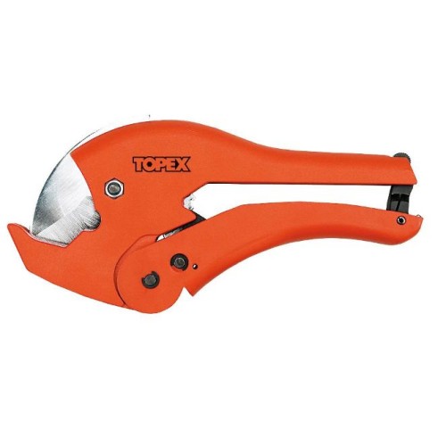 Труборіз TOPEX призначений для швидкого та зручного обрізання труб з ПВХ, ПП та ПЕ діаметром 0 - 42 мм, без деформування стінок.
