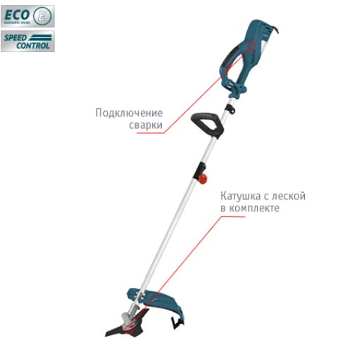 Захисний кожух захищає ноги оператора від викиду трави, коригує подачу волосіні на потрібну довжину.