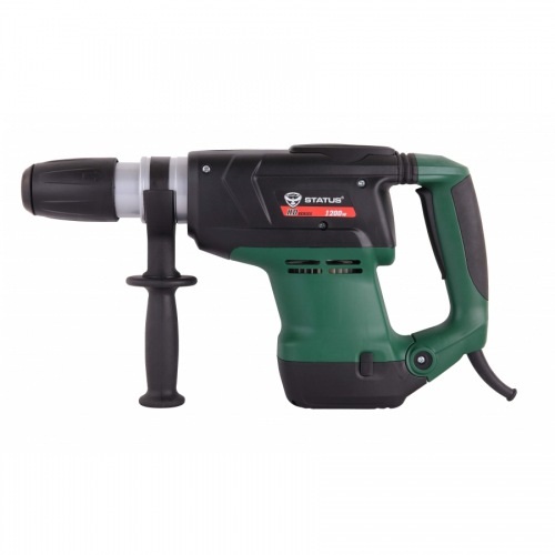 Відбійний молоток Status MH1200 - вузькопрофільний інструмент з руйнівною силою удару 12 Дж. Двигун розташований вертикально, завдяки чому загальна довжина інструменту досить зручна для роботи в обмежених умовах. Задня рукоятка "підпружинена", що дозволяє уникнути зайвої дії вібрації на пензель користувача. Передня ручка легко встановлюється у будь-якому зручному положенні.