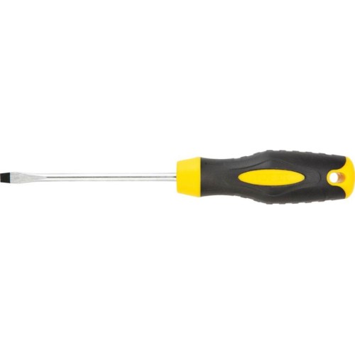 Деталі: Викрутка шліцева, загартоване жало, намагнічене жало, сталь CrV, двокомпонентна рукоятка;