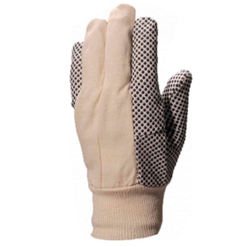 Захисні рукавички. Чесана бавовна-рубчик. Французький крій. Точкове покриття ПВХ з долонного боку, на напалках великого, вказівного пальців та мізинця. Захист від вислизання предметів.