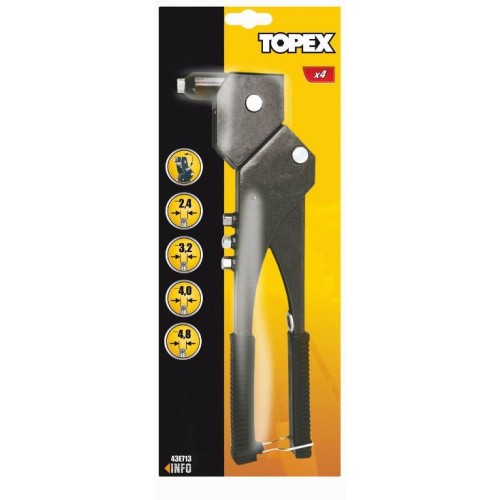 Заклепочник TOPEX для алюмінієвих заклепок діаметром 2.4, 3.2, 4.0, 4.8 мм.