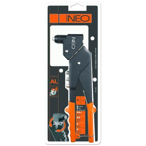 Заклепочник NEO для сталевих та алюмінієвих заклепок діаметром 2.4, 3.2, 4.0, 4.8 мм.