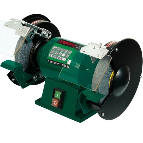 Заточувальний верстат Verto 51G450 200 Вт з діаметром робочих дисків 150 мм. Призначена для виконання легких робіт у невеликих майстернях, а також для майстрів-аматорів. Відмінно підходить для заточування таких інструментів, як свердла та зубила, з можливістю кріплення дискових дротяних щіток. Корпус міцний із захисними екранами. Максимальна частота обертання робочого диска без навантаження становить 2950 об/хв. Шліфувальна машина продається в комплекті з 2 шліфувальними дисками A36 та A60. Відповідність європейським стандартам безпеки підтверджує сертифікат CE.